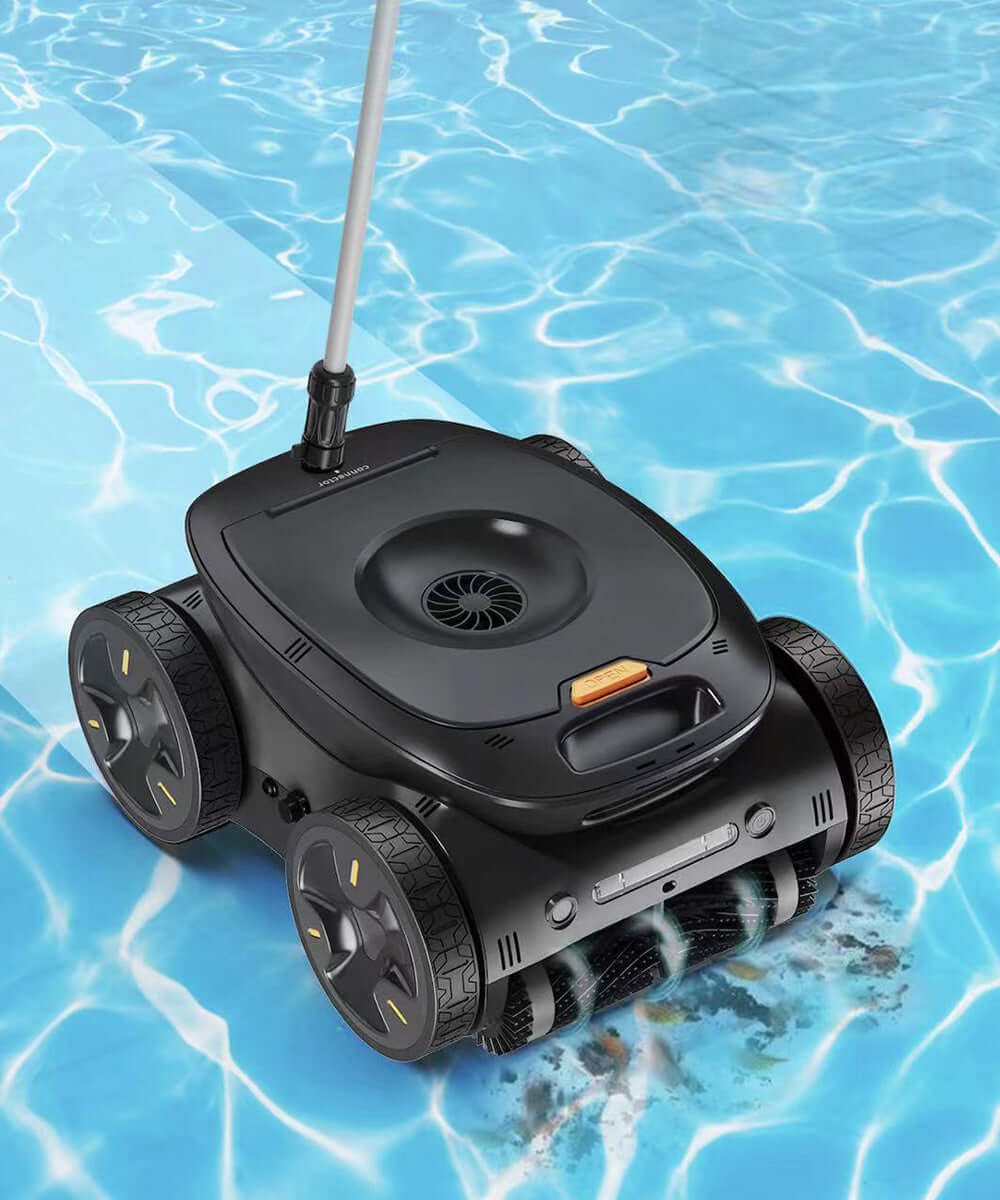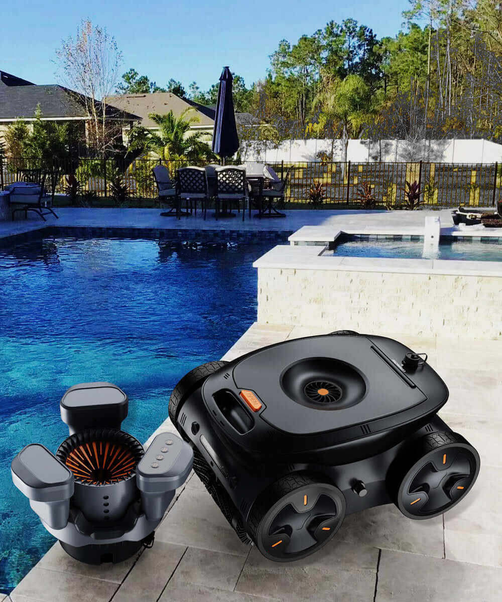 The main unit of the robotic pool cleaner is equipped with intelligent navigation, powerful suction, and multi-layer filtration. It effectively cleans the pool floor, walls, and waterline, delivering comprehensive results for all pool types.